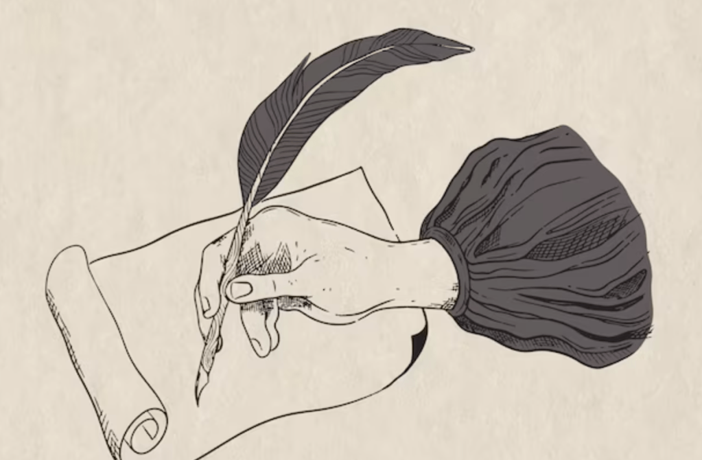 Because I could not stop for Death – / He kindly stopped for me – / The Carriage held but just Ourselves – / And Immortality. / We slowly drove – He knew no haste / And I had put away / My labor and my leisure too, / For His Civility – / We passed the School, where Children strove / At Recess – in the Ring – / We passed the Fields of Gazing Grain – / We passed the Setting Sun – / Or rather – He passed us – / The Dews drew quivering and chill – / For only Gossamer, my Gown – / My Tippet – only Tulle – / We paused before a House that seemed / A Swelling of the Ground – / The Roof was scarcely visible – / The Cornice – in the Ground – / Since then – ‘tis Centuries – and yet / Feels shorter than the Day / I first surmised the Horses’ Heads / Were toward Eternity –